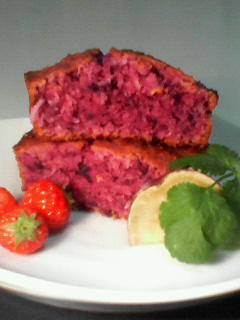 01/30/18:31 紫色のアジアンなお菓子★エゴマとココナッツの食感が楽しいケーキ♪こんにちは。はるちゃんです♪ 紫芋って、とても綺麗な色ですね。濃い古代紫の紫芋を買ったので、今回はアジアンな素材と合わせてみました。ココナッツとエゴマです。 エゴマは馴染みが無い方もいらっしゃるかも知れません。胡麻に似ていますが、もうちょっと粒が固く、しっかりしていて、丸い形をしています。炒って香ばしくすると、とても良い食感と深い味わいがあります。このケーキは芋が入っているので、少し水分が多めで、フワフワと柔らかい食感ですから、ココナッツやエゴマのように、アクセントが必要だと思い、ココナッツは生地に加え、エゴマはケーキの下に敷きました。(長崎カステラのザラメがヒントです。) 材料;小麦粉カップ1、ベーキングパウダー小さじ3、紫芋150g、砂糖カップ1、バター100g、ココナッツ30g、エゴマ、玉子1個、レモン汁適宜 ①土鍋、セラミック鍋等を使って、紫芋をゆっくり茹でる。金属鍋もOK。 ②柔らかくなった紫芋を荒く潰し、バター、砂糖、溶いた玉子を混ぜ合わせる。レモン汁少々とココナッツを加えておく。 ③ベーキングパウダーと小麦粉を合わせ②に少しずつ混ぜながら加えていく。※ここで、紫芋が綺麗な紫色の発色になる位、レモン汁を加えていく。もし、緑色っぽくなってしまっていても戻ります。加え過ぎると、ショッキングピンク!になる事があるので要注意(笑)面白いですが。 ④金属製のパウンド型の内側にオリーブオイルを塗り、隙間無くエゴマを敷き詰める。 ⑤そっと生地を落とすようにして、④に入れていく。表面をならしておく。 ⑥180度に予熱したオーブンで35分~40分位。じっくり焼いて下さい。 ※紫芋は、リトマス試験紙のように、アルカリ性になると緑色に変色する性質があるとか。酸性なら赤っぽくなるようです。実は、すごい青緑になった事があって、慌ててネットで調べると、このような性質があると、色んなサイトで解説してあったのですね…。