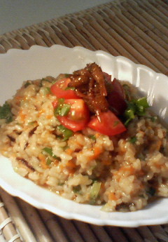 ちょっとお散歩に出かけると、春が来ています♪ 暖かな日差しも気持ち良く、そこかしこに、小さな草花や、植物の息吹を感じますね。 可愛らしいつくしで、ホッとする味わいのリゾットを作ってみました。 ネギ、しいたけ、お醤油、つくしの香り…とっても和みます。 つくし、ちょっと手間がかかるけれど、季節を楽しむ素敵な食材ですね! なんだか懐かしい、少女時代の香りがします。 子供のころは、クローバーで花かんむりを作ったり、れんげを摘んだりして、野山の春を満喫していました。 ![]() ↑「クリックご協力お願いします。 ランキングサイトの順位が上がって、読んでくださる方が増えます♪」 ・レシピ (*^-^*)Ψ (*^-^*)Ψ 材料;ねぎ1本、たまねぎ1個、人参半分こ、干ししいたけ5枚、桜海老、つくしカップ1(袴を取り、水にさらし、砂糖醤油で煮ておきます)、にんにくひとかけ、だし醤油、塩こしょう、オリーブオイル、米1合(2人前)、パルミジャーノチーズ(お好みで) ①干ししいたけは1リットル位の熱湯で戻します。戻し汁は使うので、取っておきます。 ②ねぎ、人参、たまねぎ、戻したしいたけ、つくし半分…全てみじん切りにしておきます。 ③フライパンにオリーブオイルを多めにしき、にんにくを炒めて香りを出します。 ④にんにくに火が通ったら、みじん切りにした玉ねぎと、米を加え、炒めます。 ⑤米に透明感が出たら、つくし以外とネギの半分以外のみじん切りの材料と桜海老を加えて炒めます。 ⑥全体に馴染んだら、少しずつしいたけの戻し汁を加えて、ヘラで底からかき混ぜながら、炊きます。炊き上がるまで、この作業を続けます。 ⑦好みの硬さより、やや固め位で、しいたけの戻し汁を入れるのを止めます。火を止め、出し醤油、塩コショウで味を調え、つくしと取っておいたネギを加え、再び軽く火を入れます。 ⑧仕上げに、好みでパルミジャーノを削り、残りのつくしを飾ります。 最後まで読んで下さって、ありがとございます~♪ |