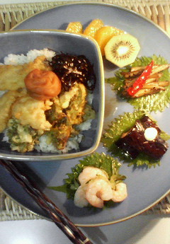 お茶漬けに、メンタイ、からし菜の天ぷらを入れてみました。 はぶ茶で、すっきりと頂きます。 ご飯も、麦ご飯を炊いてみました。 お茶漬けには、麦ご飯が、よく合うように思います。 ダーリンは天ぷらのお茶漬けは、初めてで、興味津々。 ちょっと気分は、料亭風。(気分だけー。笑) その他のおかずは、フキのキンピラ、ナスの揚げ浸し、 エビとキュウリのピリ辛和えです。 色々盛り合わせるワンプレート、和食でも美味しく手軽で、イイですね♪ 洗い物が少なくて、カラフルになる所も気に入っています! ![]() ↑「クリックご協力お願いします。 ランキングサイトの順位が上がって、読んでくださる方が増えます♪」 ・レシピ (*^-^*)Ψ (*^-^*)Ψ 材料;天茶漬け(天ぷら粉、水、メンタイ、からし菜、梅干、ごま昆布、塩、わさび、はぶ茶)、麦ご飯 ①からし菜を茹で、水気を絞っておく。 PR