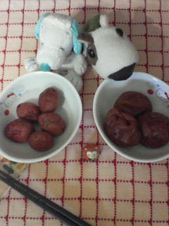 12/28/08:02 梅干のおいしさって…おはようございます。はるちゃんです♪ 昨日は予告無しでブログをお休みしてしまってごめんなさい…。 大掃除の途中で大変な事になりまして。シールのベタベタ、上手な取り方あるのかな~? ガス台周りのタイルにアルミシートの汚れ除けを全面に貼っていたのですが… これを半年ぶりに剥がし、新調しようとしたら… 糊がベトベトに残ってしまって泣きそうになりました(;;)結局いろいろ試行錯誤した結果自分なりに簡単に落とす方法が分かりました。 ①湿らせたベタベタ面に重曹をタップリ思い切りまぶしつけます。 ②スポンジで練っていく感じで重曹と糊をなじませていきます。 初めはガリガリこすって、焦げ付き用のコンパウンドまで使用しました。 でも、全く取れなかったのです。 なのに不思議。重曹を塗してネリネリするだけで、取れてしまったんです。びっくり!! さて、ブログ本題のおいしいお話しますね。 私は出来る範囲で地産地消を頑張っていて…お野菜のトレーサビリティーなんかも気になったり。 で、一ヶ月に一回、青空市場でまとめ買い。その他の週は産直市に出かけて行きます。 青空市場は地元の農家が直接に軽トラで持って来るので、農家の人とお話しながら買い物が出来ます(^^) 落として割ってしまったとかで、セロテープで治した(?)だいこんを30円で売ってもらったり…。 産直市は、加工品も多く、青空市場とはまた、別の楽しみがあります。 私が行く産直市は…400軒以上の農家と契約してあるそうで 全ての商品に、原料の原産地名、生産者名が書いてあるのですが (ここだけかな?日本全国の産直市でも書いてあるのかしら?) 特にお漬物なんて、そのお家の味が出ていて、とっても美味しく楽しみなんです。 昨日まで食べていた梅干はしっとり柔らか系。今朝新しく封を開けて食べ始めたものはカリカリ系です。 小梅じゃなくってカリカリ梅を食べたのは初めて。大好きです、この味。食感が楽しい。 なのに…ダーリンは「紀州のはちみつ梅がいい。甘い梅干が好き」なのだそうです。 私は自然な味わいのシンプルな梅干が好きなのですけど…。 お漬物の味の好みってホントに人それぞれです(^^)。 そして、産地も材料もほとんど同じなのに、梅干の味って漬ける人でかなり違うものなんですね。 スヌーピーが見てるのが「カリカリ梅」、THE DOGは「はちみつ梅」を見つめています… 私はその家庭、農家それぞれ独自の工夫が感じられる味が好きなのかも…。ちょっぴりぬくもりを感じたりして。 ランキングに参加しました。クリックしていただけると嬉しいです♪ありがとうございます。 ↓ |
