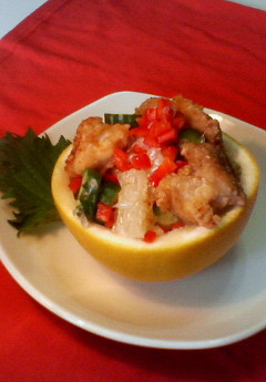 03/24/15:21 クリスピーチキン柚子ソース♪柚子をまるごと食べちゃうソースこんにちは。はるちゃんです♪