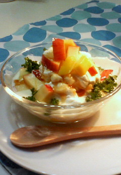 豆乳やお豆に夢中で、食卓に登場する回数が多くなっています。そんな私に、ある日ダーリンが言いました。「俺、あんまり豆乳好きじゃないんだ…。」 そ、そうなの…?ってちょっと困惑する私。 ダーリンは、ピーマンとバターも大嫌いなのですが、結婚当初、それをずっと黙っていました。 「ピーマンと塩昆布のバター炒め」が好きな私は、ダーリンが苦手だなんて知らずに…ピーマンの美味しい夏は、毎日食べさせちゃっていました。 ある日突然「実は、ピーマンも、バターも嫌い」と告白されてビックリ。作ってくれる人の気持ちを考えてしまうらしく、遠慮しちゃうみたいです。 ちょっとクセのある豆乳の香り。実は、これはヨーグルトで、かなり消す事が出来るんです。ダーリンのために、このデザートを考えました。泡立てた生クリームをマゼマゼしつつ頂けば…ふんわりリッチな舌ざわりに変わって、リッチな美味しさに♪低脂肪の生クリームなら、カロリーも少なめ。 ダーリンはおいしいを連発していました。豆乳入っているんだけどな~♪(ひ・み・つ) ↑ 「クリックご協力お願いします。 ランキングサイトの順位が上がって、読んでくださる方が増えます♪」 ・レシピ (*^-^*)Ψ (*^-^*)Ψ 材料;豆乳、ヨーグルト(加糖)、生クリーム、砂糖、レモン汁、お好みのフルーツ(写真はマンゴー、りんご)、蜂蜜 ①豆乳とヨーグルトを1対2の割合で混ぜる ②マンゴーは3枚におろす。 ③マンゴーとリンゴを、1センチ角に切り、レモン汁を振る。 ④生クリームは砂糖を加えて泡立てる。100ccにティースプーン2杯ほど。 ⑤ヨーグルトとフルーツの半分量を混ぜ、器に盛る。 ⑥見た目が良くなるように、生クリームをこんもり高めに盛る。 ⑦フルーツをトッピングする。 ⑧蜂蜜をかける。 最後まで読んで下さって、ありがとございます~♪ PR