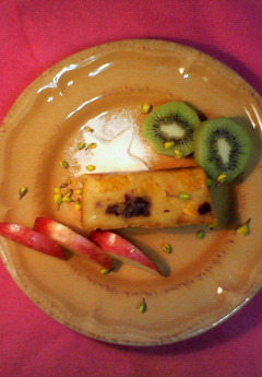 このケーキは、自分のために焼きました。 ちょっと疲れた時に、そっと癒してくれるような優しいケーキです。フワフワもちもちの食感で、たっぷりのフルーツの甘い香りが漂います…。 とっても簡単に出来て、カロリーも控えめ。 材料は買い置き出来るものばかり。 リラックスしたい時に、フルーツのアロマが、とてもピッタリだと思います。ちょっと無い食感なので、プレゼントにも、きっと喜んでもらえますし、紅茶といっしょに、頂きたいです。 材料;マンゴーの缶詰一個、ピーチの缶詰一個、熟れたバナナ2本、卵黄5個分、はちみつ小匙2杯、レーズンとカシス、プルーンのドライフルーツ合計100g、コーンスターチ8分の1カップ、薄力粉1.5カップ、溶かしバター50g、クローブなど好みでスパイス、レモン汁 ①マンゴー、ピーチ、バナナは1センチ位に切り、ボウルに入れる。レモン汁をたっぷりかけておく。 ②レーズン、カシスと刻んだプルーンをボウルに混ぜ、馴染ませる。 ③卵黄5個とはちみつをボウルに加える。 ④コーンスターチと小麦粉を、少しずつ混ぜ込み、トロリとした生地を作る。 ⑤溶かしバター50gをボウルに加え、混ぜる。好みでスパイスを加える ⑥焼型にオーブンペーパーを敷き、生地を流し込む。 ⑦オーブンを180度に暖める。 ⑧温度を160度まで下げて50分、じっくり&ゆっくり焼き締める。 フルーツの缶詰、ピーチとマンゴーは大好きで、よく使います。 シロップで煮たフルーツとバナナの水分と甘さを利用したケーキです。砂糖も入りませんし、バターもバナナが入る事で、少なめに。 ↓応援ぽち、よろしくお願いします。とても励みになります。 |